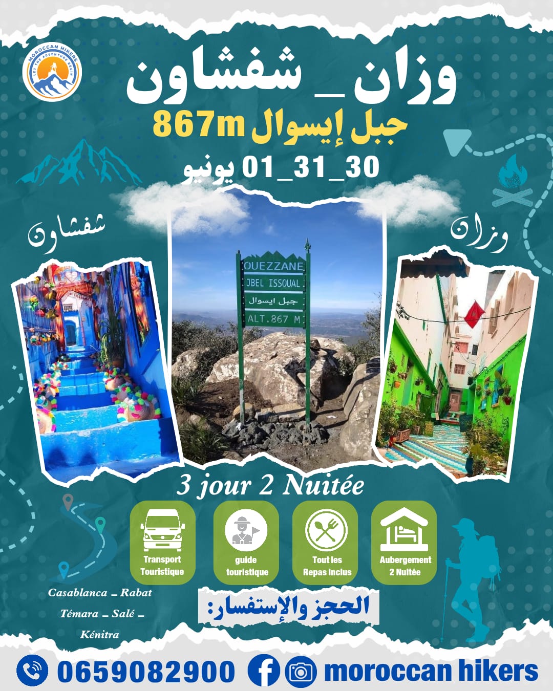 رحلة استثنائية تمتد ليومين وأكثر، نأخذكم خلالها إلى قلب الطبيعة البرية في شمال المغرب، حيث سحر جبل إيسوال 867م، وعبق التاريخ في مدينة وزان العريقة، مروراً بجمال شفشاون الساحر.