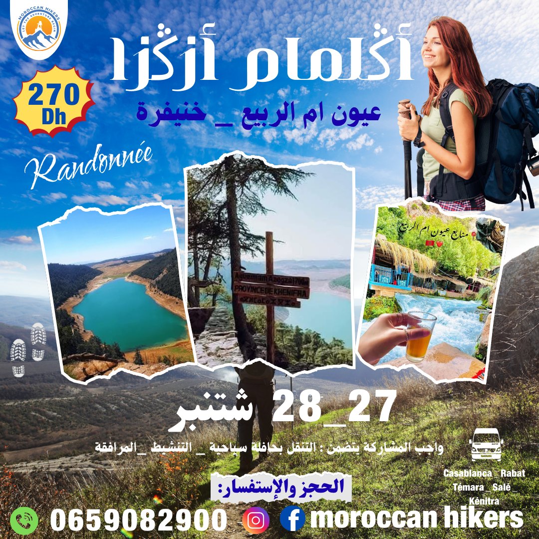 🔰يعد موقع أكلمام أزكزا أو البحيرة “الخضراء” جوهرة طبيعية حقيقية تقع على بعد حوالي 30 كلم عن مدينة خنيفرة وعلى علو يقارب *1500 متر*، وهو أحد الوجهات المفضلة من قبل السياح و ساكنة الجوار).